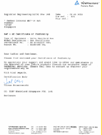Particularly for our Gas cabinet and Valve Manifold Box, it has gone through and obtain Semi S2 certification issued by TUV.